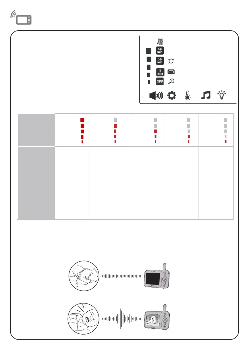 Quando selecionado o VOX, o ecrã da unidade dos pais permanece desligado para poupar