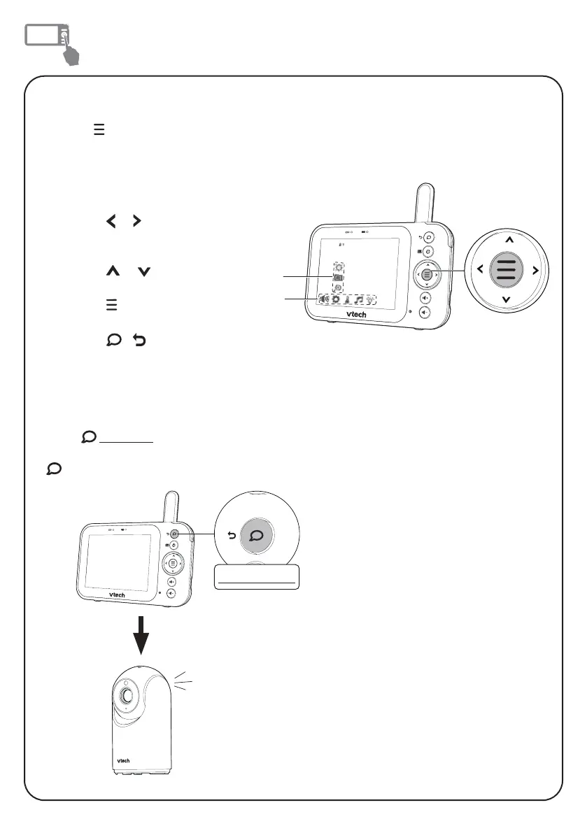 Houd ingedrukt en praat tegen uw oudereenheid. Uw stem wordt doorge-