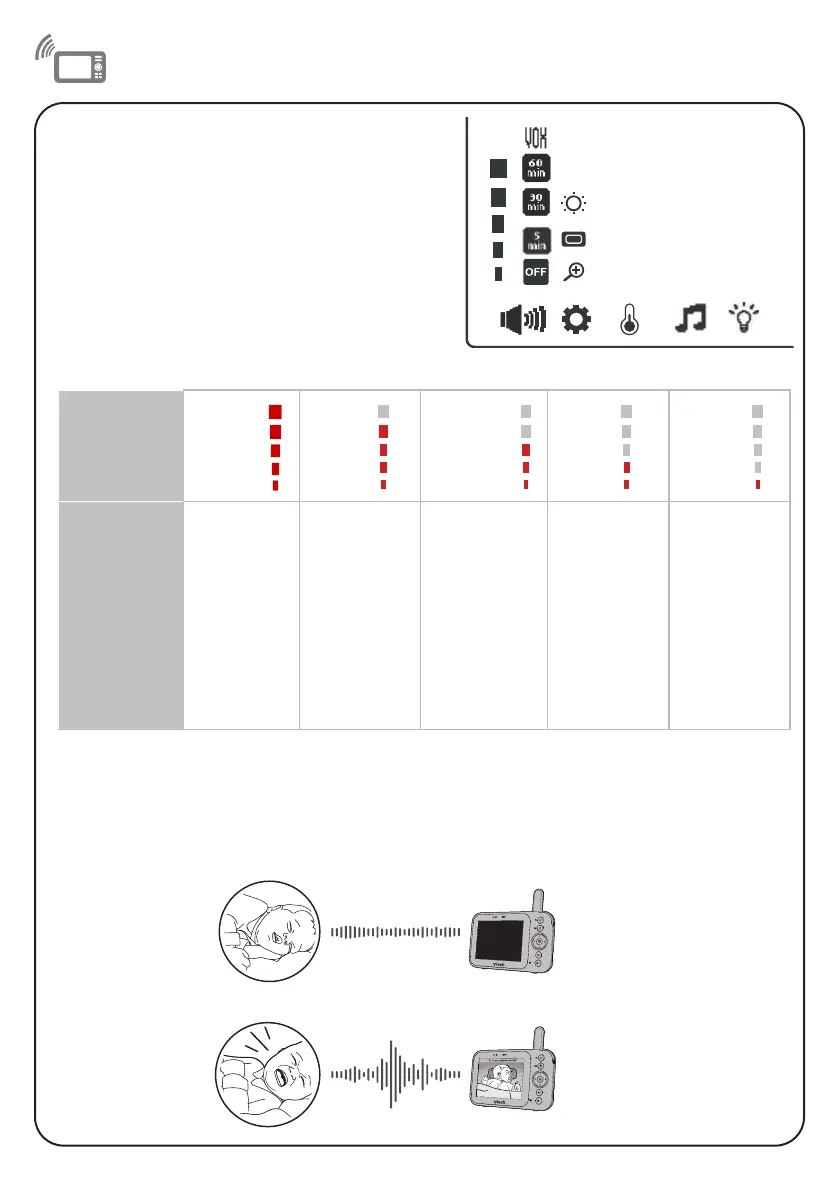 ligheidsniveau. Zodra de babyeenheid geluiden detecteert die harder zijn dan het ingestelde