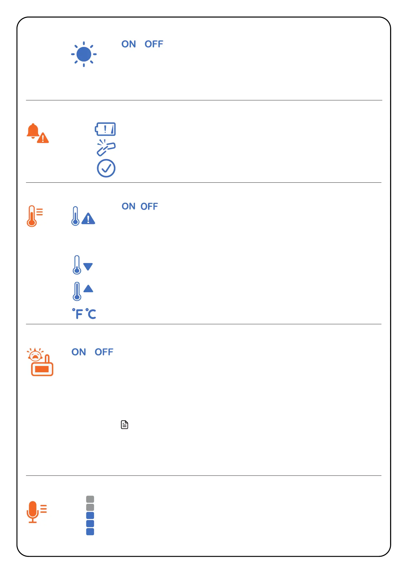 • Set the parent unit to beep whenever the room temperature
