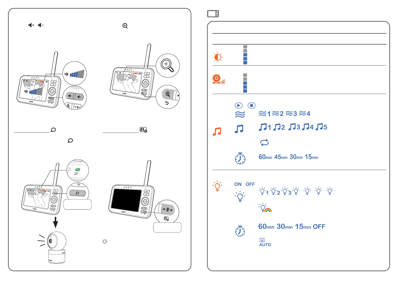 • Ajustar el brillo de la pantalla LCD dela unidad parental.