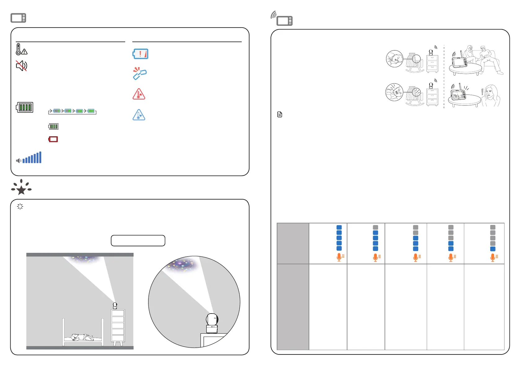 • La luz de proyección situada en la parte superior de la unidad para el bebé proyecta una escena