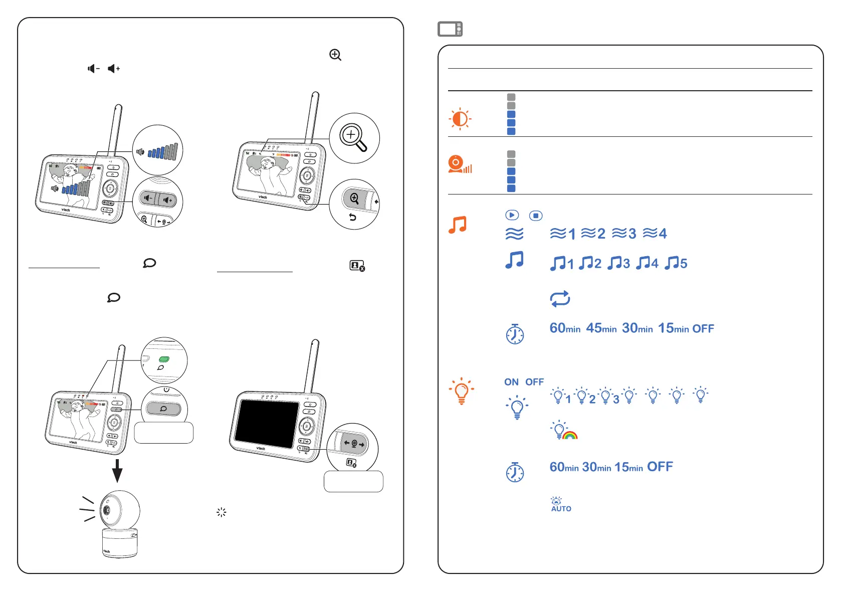 veilleuse uniquement lorsque l’unité Bébé détecte un bruit en fonction