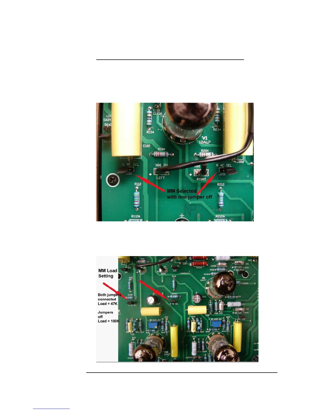 the board marked JP101 and JP201. To set the preamplifier for MM