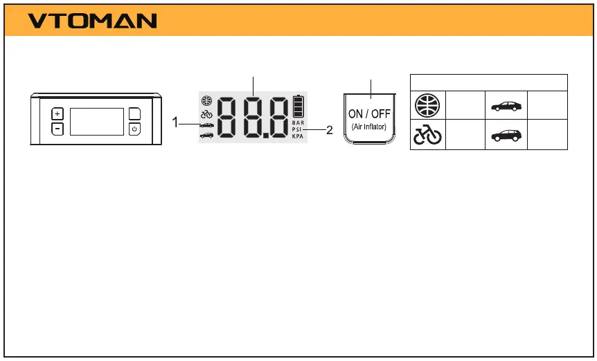 the air inflator mode. Similarly, press and hold the "ON/OFF" key for 3s to exit this mode.
