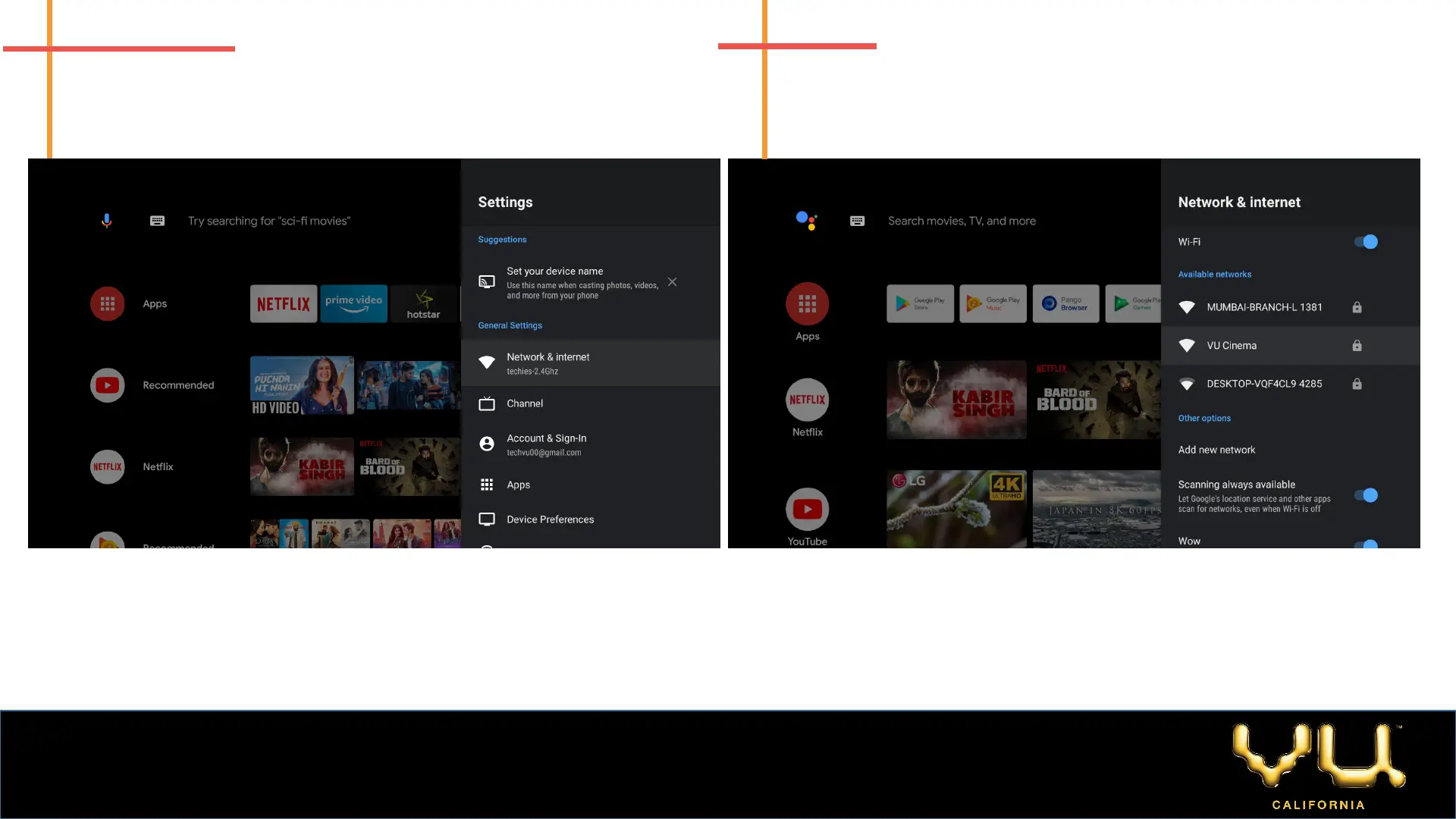 WIFI CONNECTION IS VU CINEMA.