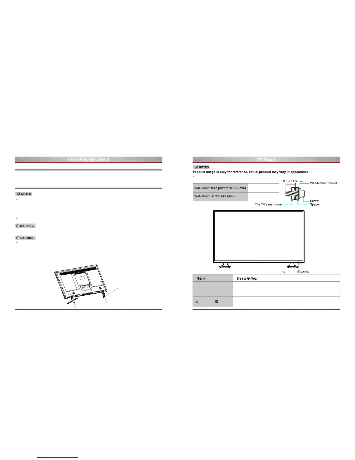 For tabletop use,the TV must be attached to the provided stand as shown on this page.