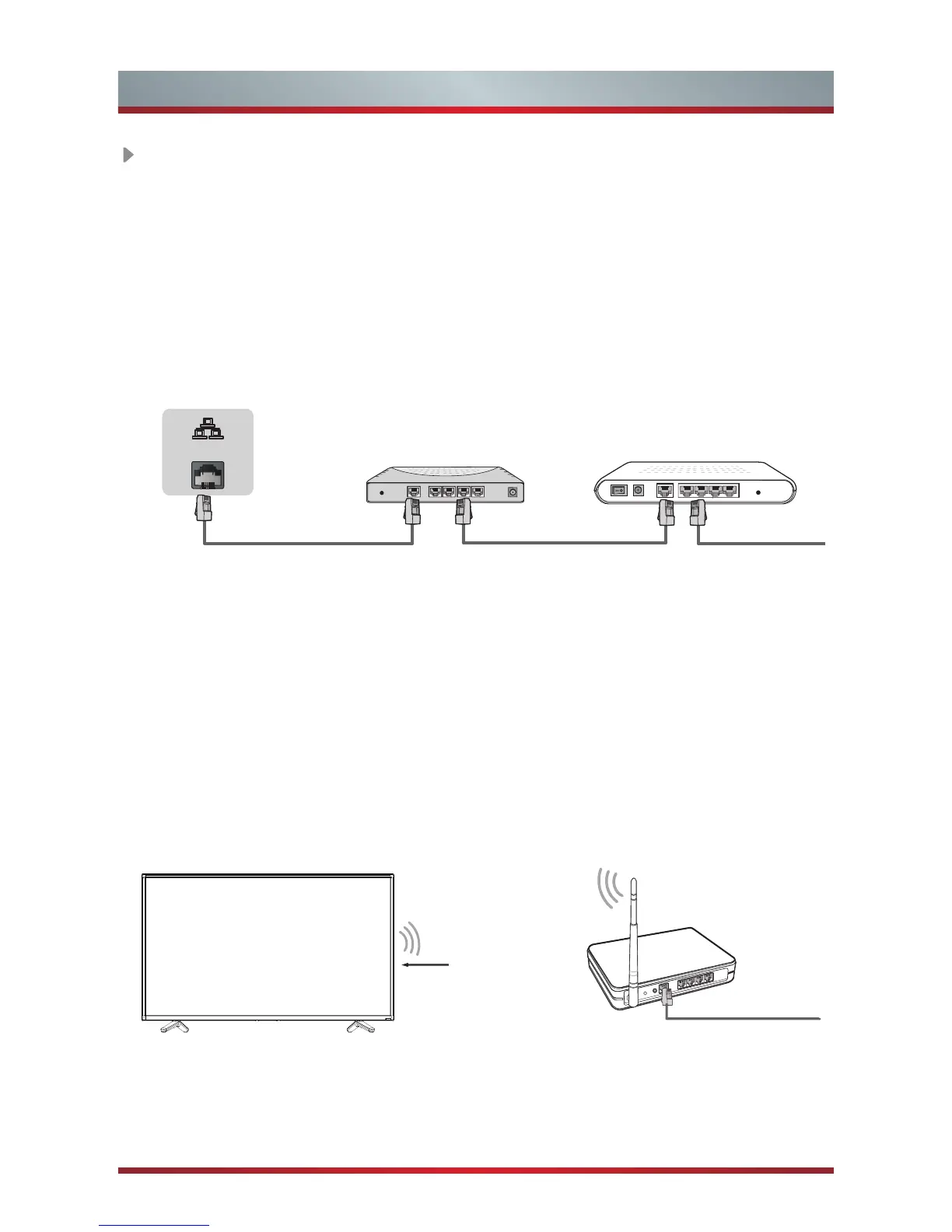 TV to an external modem or router using a LAN (Ethernet/Cat 5) cable. See the