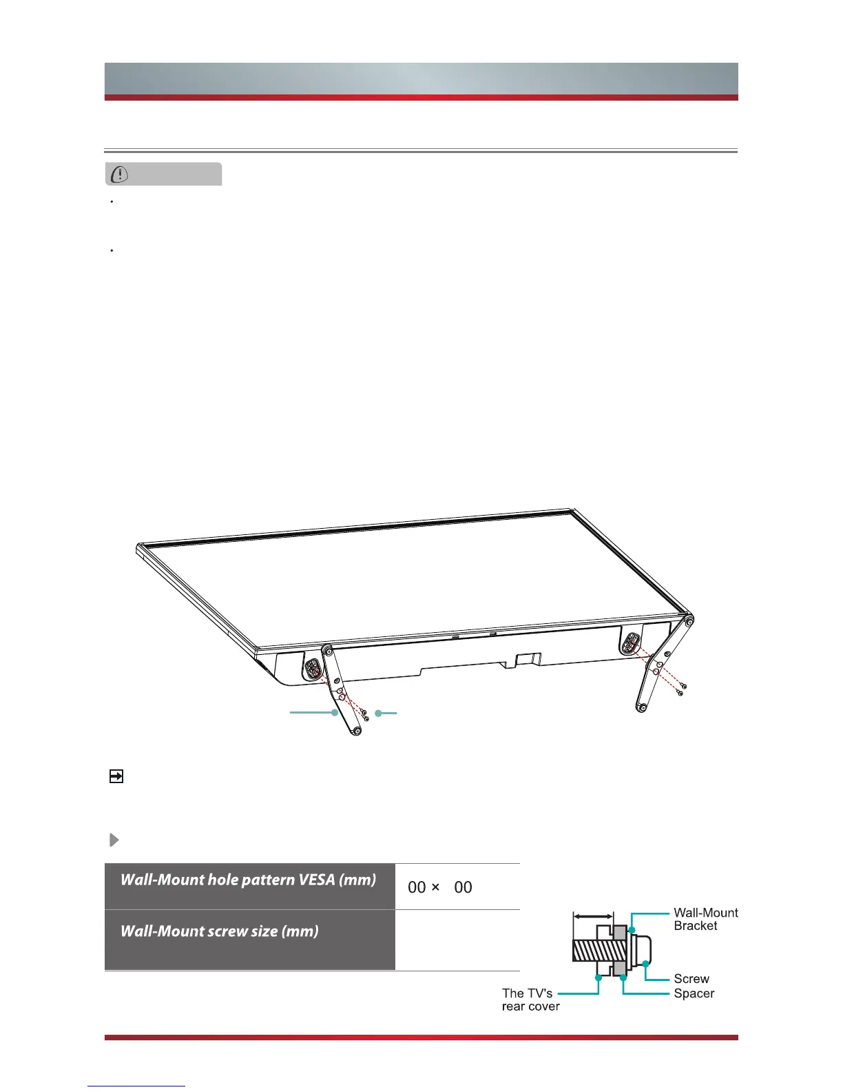 Be sure to disconnect the A/C power cord before installing a stand or Wall-Mount