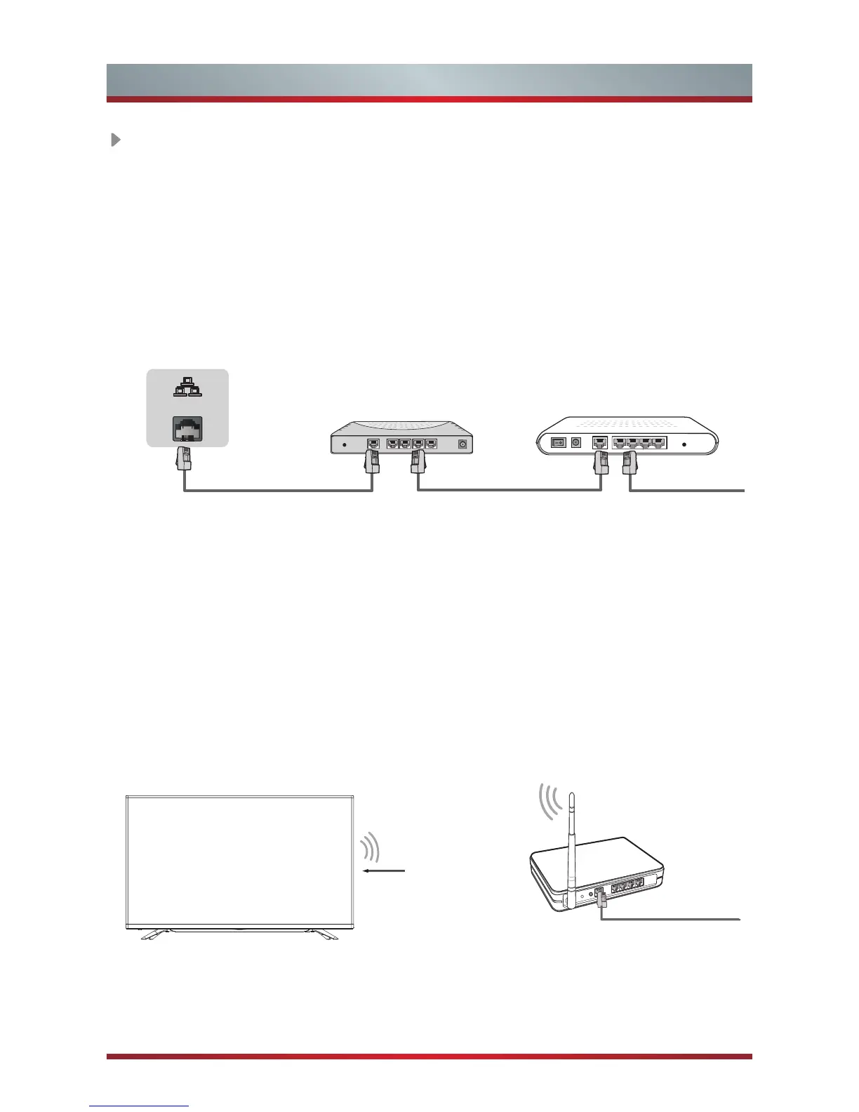 TV to an external modem or router using a LAN (Ethernet/Cat 5) cable. See the
