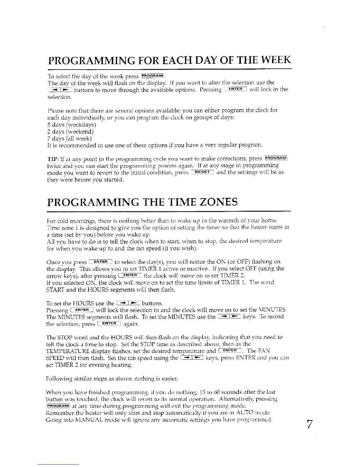 Vulcan Heating Silhouette - Advanced Timer Programming Functions; Day-Specific Programming Options; Time Zone Scheduling