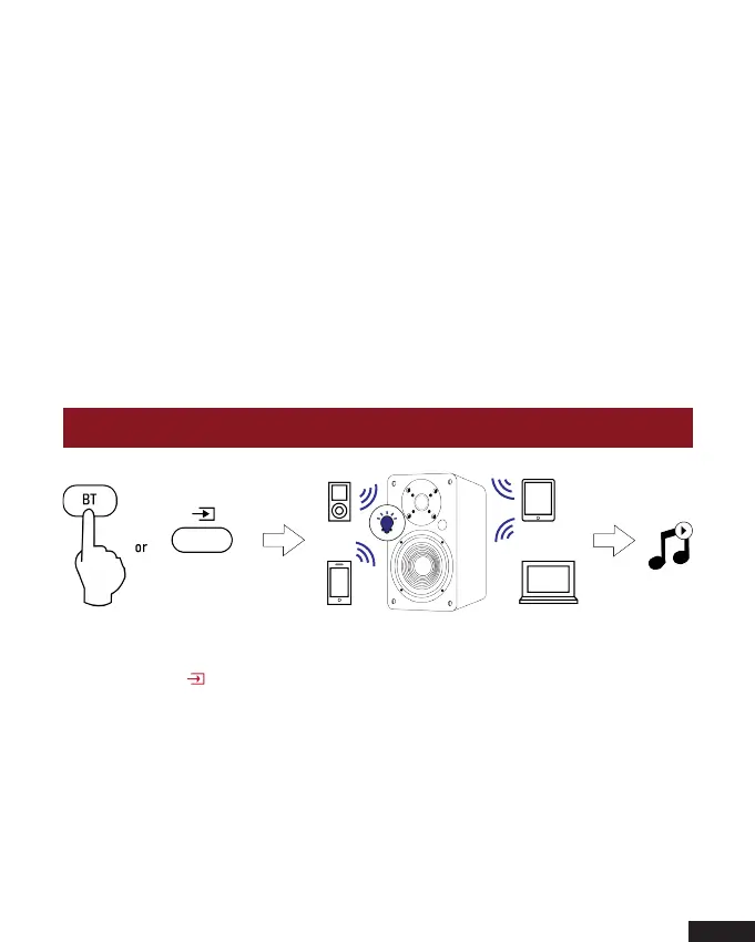 Sie den “ ” Knopf auf der Rückseite des aktiven Lautsprechers. Die