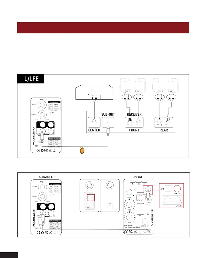 Ligação do subwoofer aos altifalantes Vulkkano