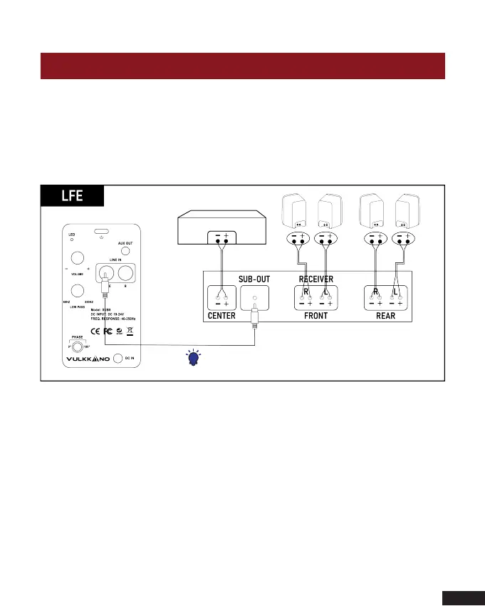 “SUB OUT” de votre récepteur à l'entrée LFE du caisson de basses.