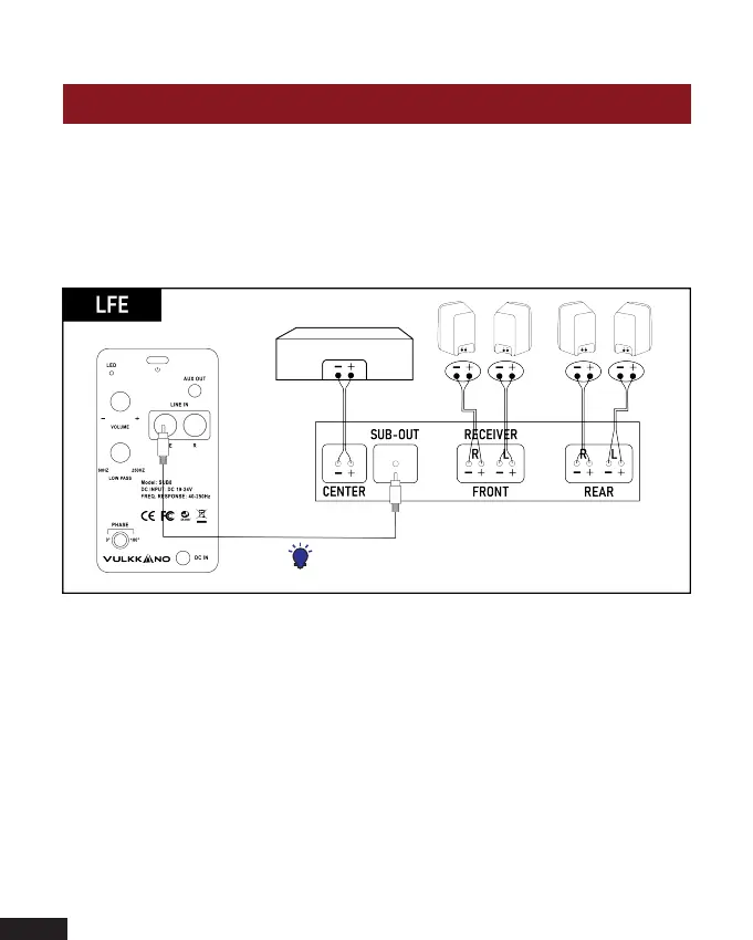 receptor a la entrada LFE del subwoofer. Este método de conexión