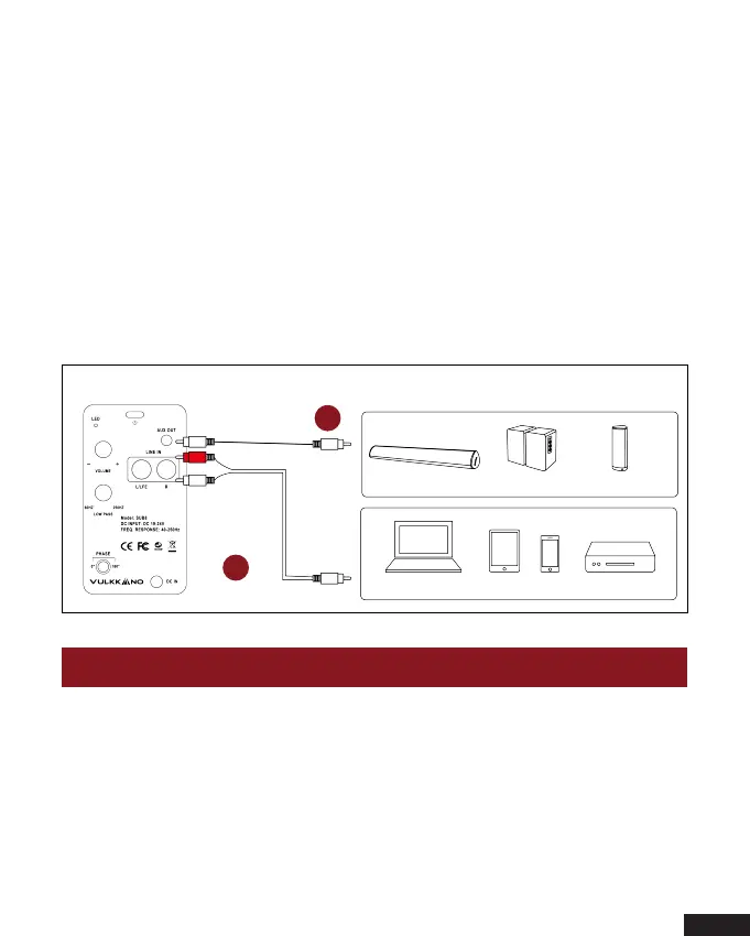 1. Conexión mediante cable estéreo 3.5mm a 3.5mm entre el subwoofer