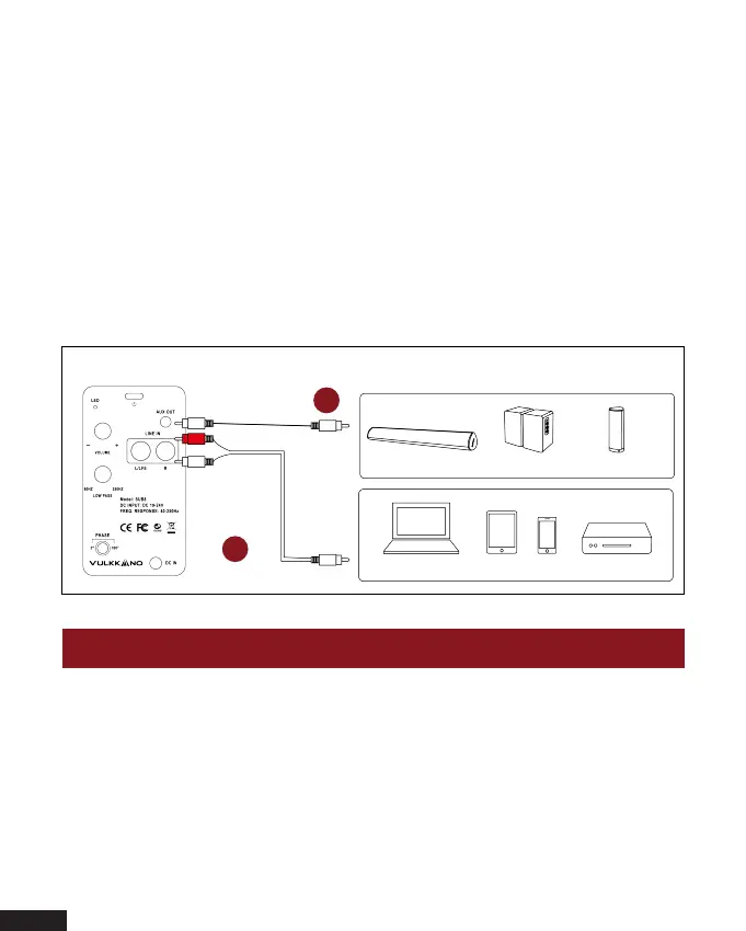 des Fernsehers, PCs, Tablets usw. an den Audioeingang des Subwoofers.
