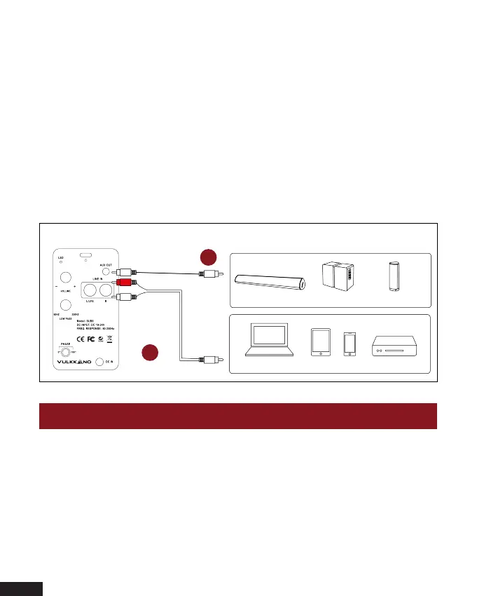 de áudio da TV, PC, tablet, etc. à entrada de áudio do subwoofer.