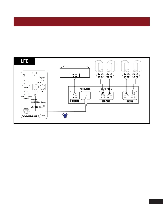 NOTE: Connect a single subwoofer cable from the “SUB OUT” of your
