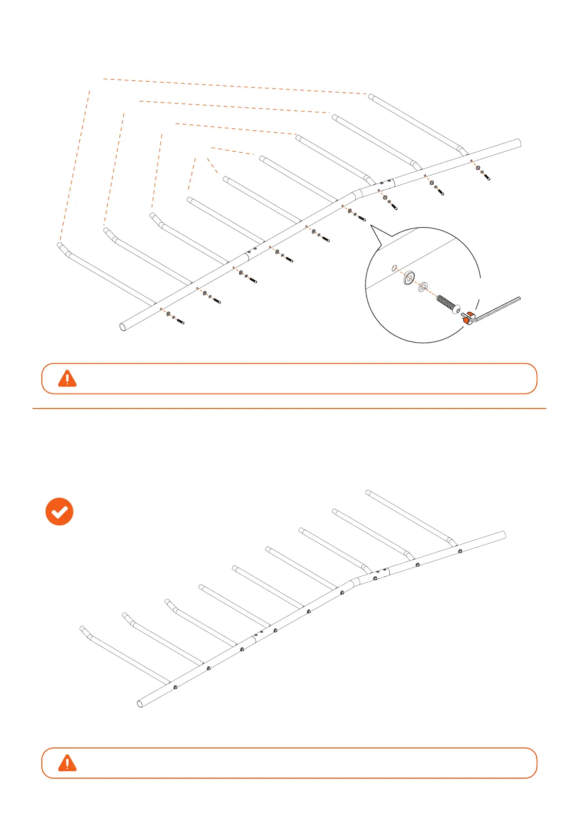 Ensure that the bolts are not overly tight. You may need to rotate some Monkey Bars to fit into the remaining