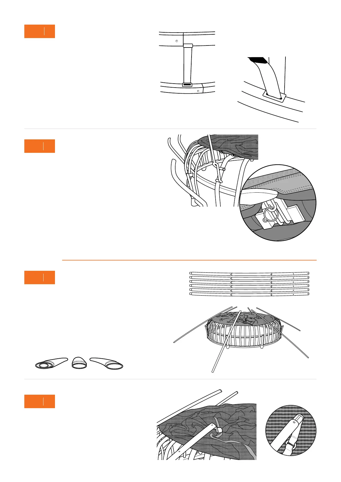 A. Go around your trampoline, inserting and attaching the