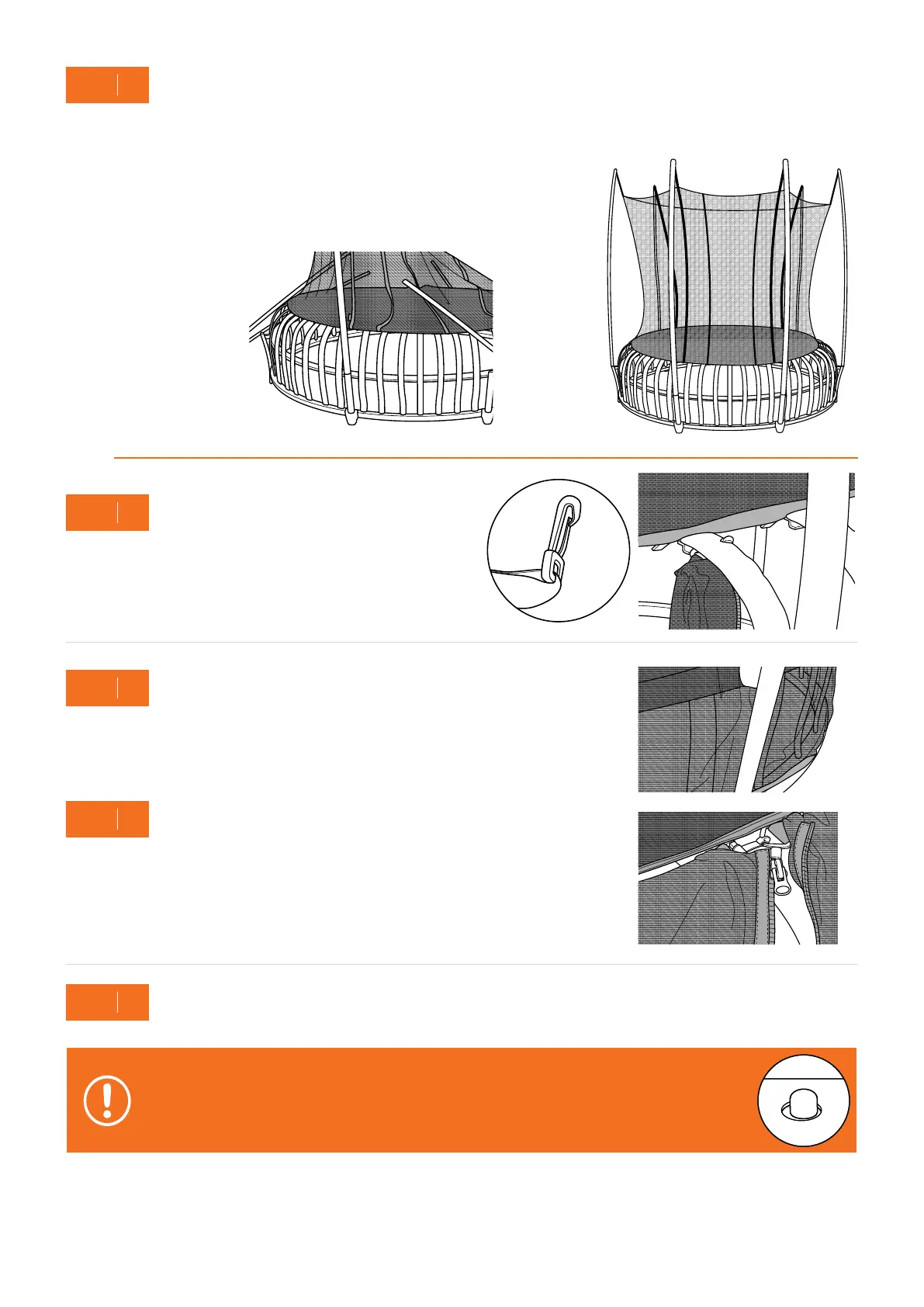 WARNING: Make sure that all push buttons are locked and secured before using your trampoline.