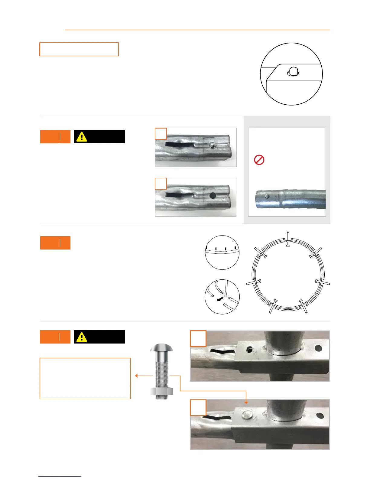 B. Insert Joiner Pole nuts and bolts through the holes that connect