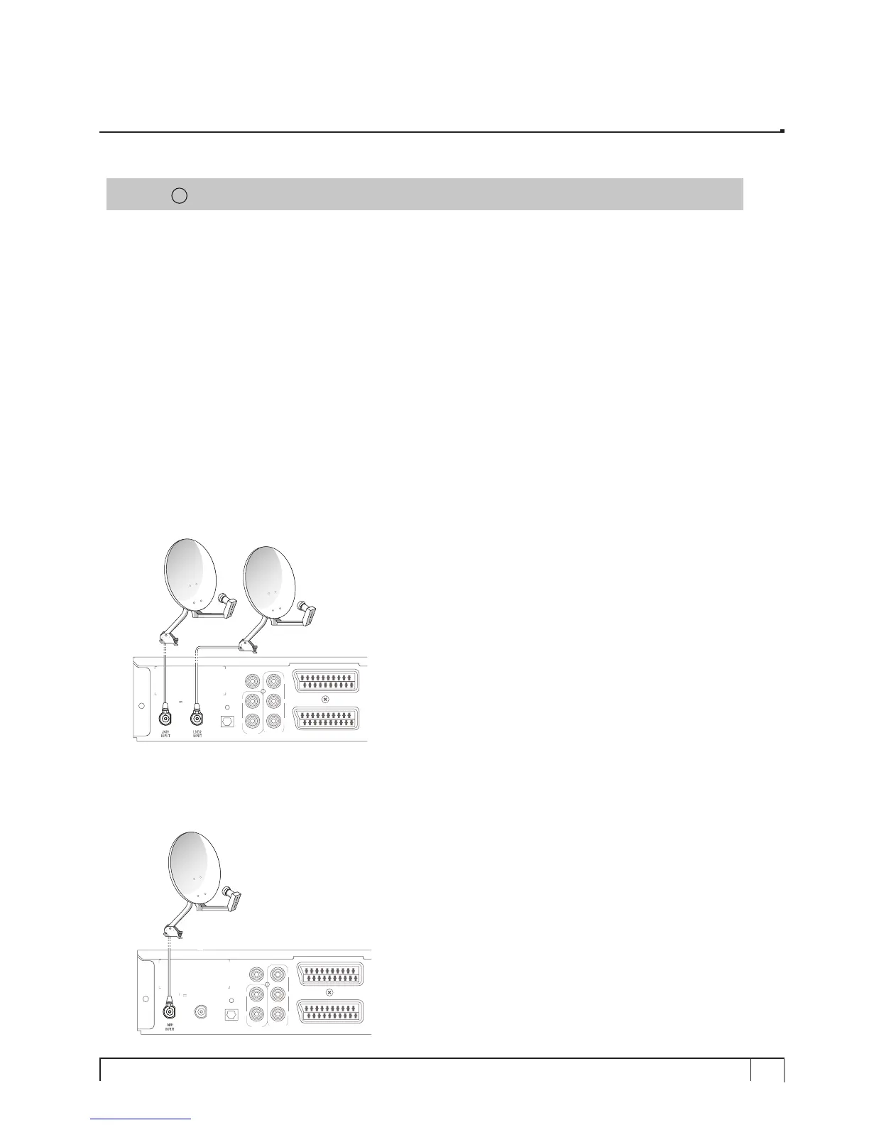 In case you have only one satellite cable, connect the cable to LNB 1 Input.