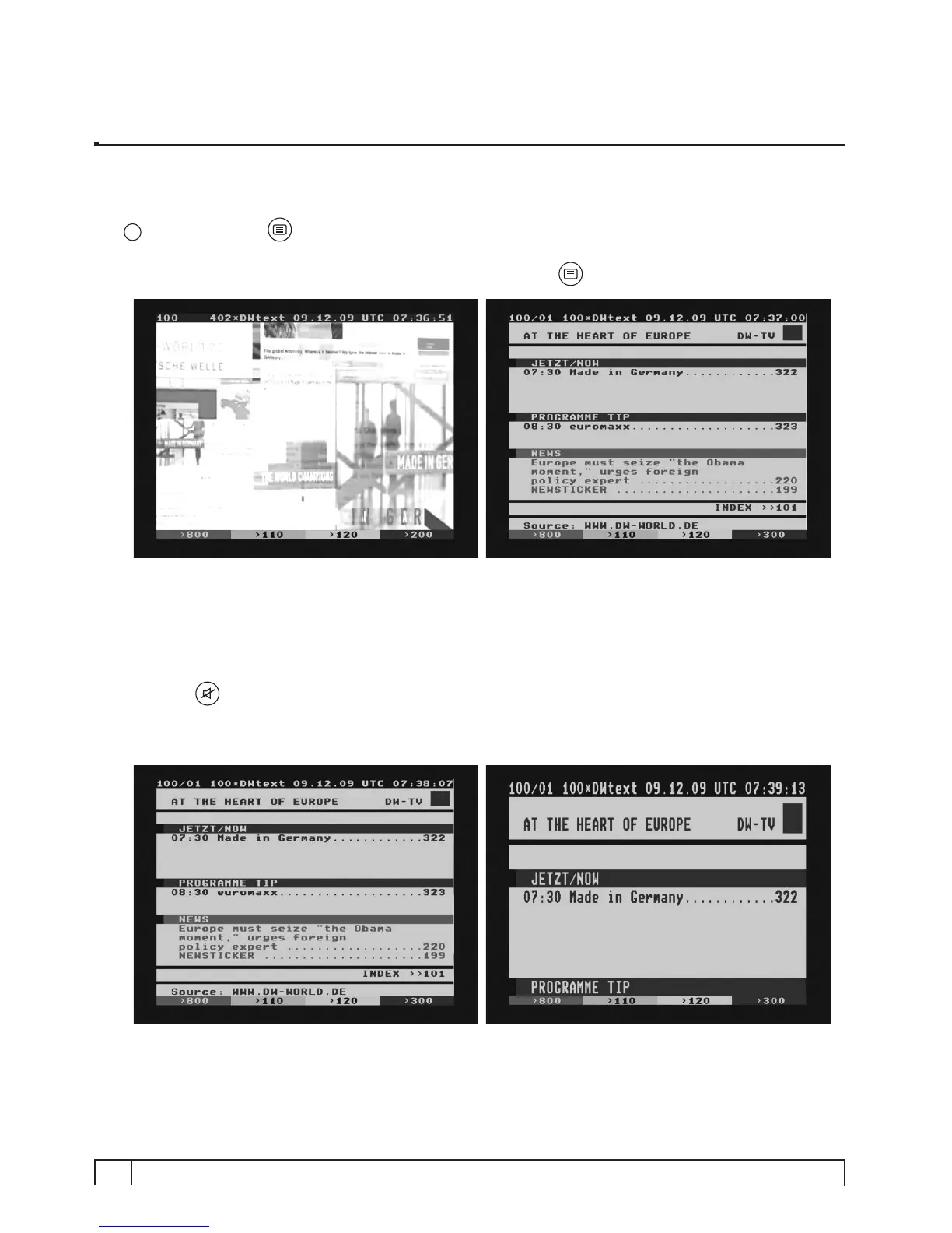 Once you activated Teletext, you can toggle between the live mode and the Teletext page by pressing