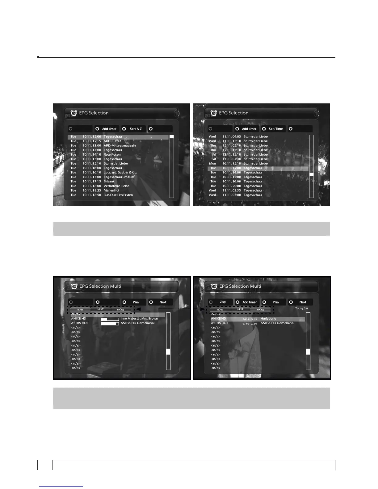 NOTE : Not all channels provide EPG information and thus in case of no EPG data, nothing will