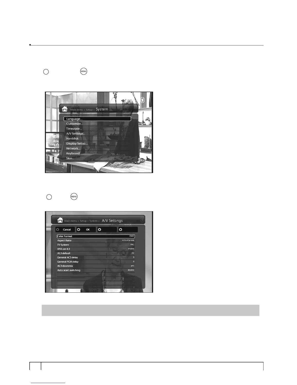 Here you will find options necessary to set up the audio and video configuration of your Vu+.