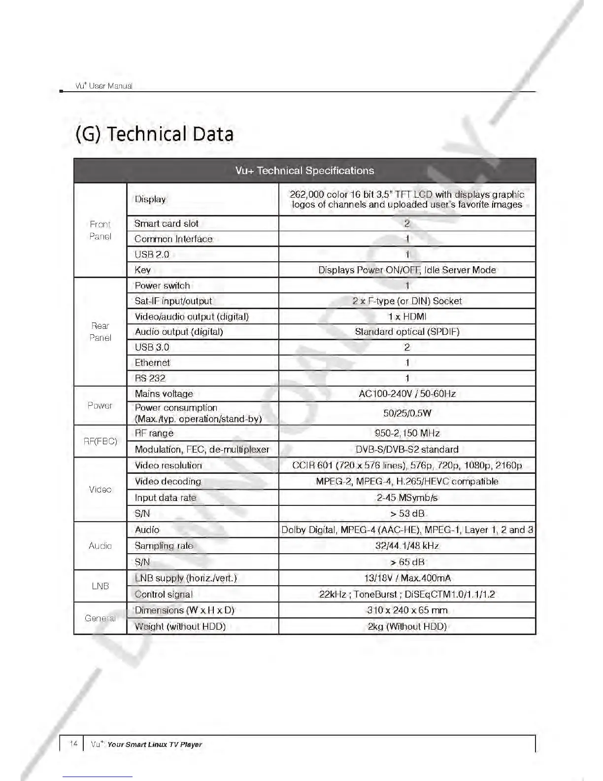 Vu+ SOLO 4K - Technical Data