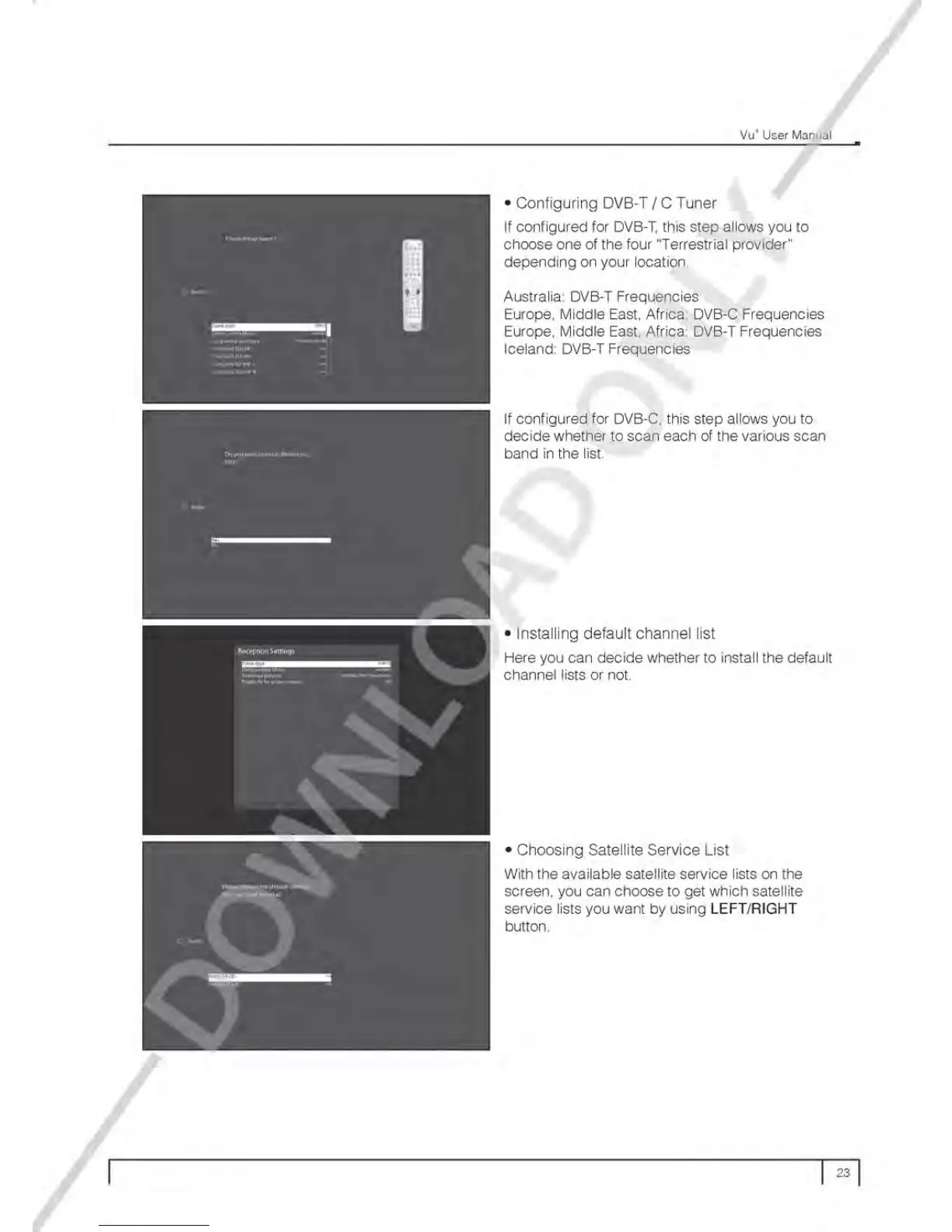 Vu+ SOLO 4K - Configuring DVB-T;C Tuner; Installing Default Channel List; Choosing Satellite Service List