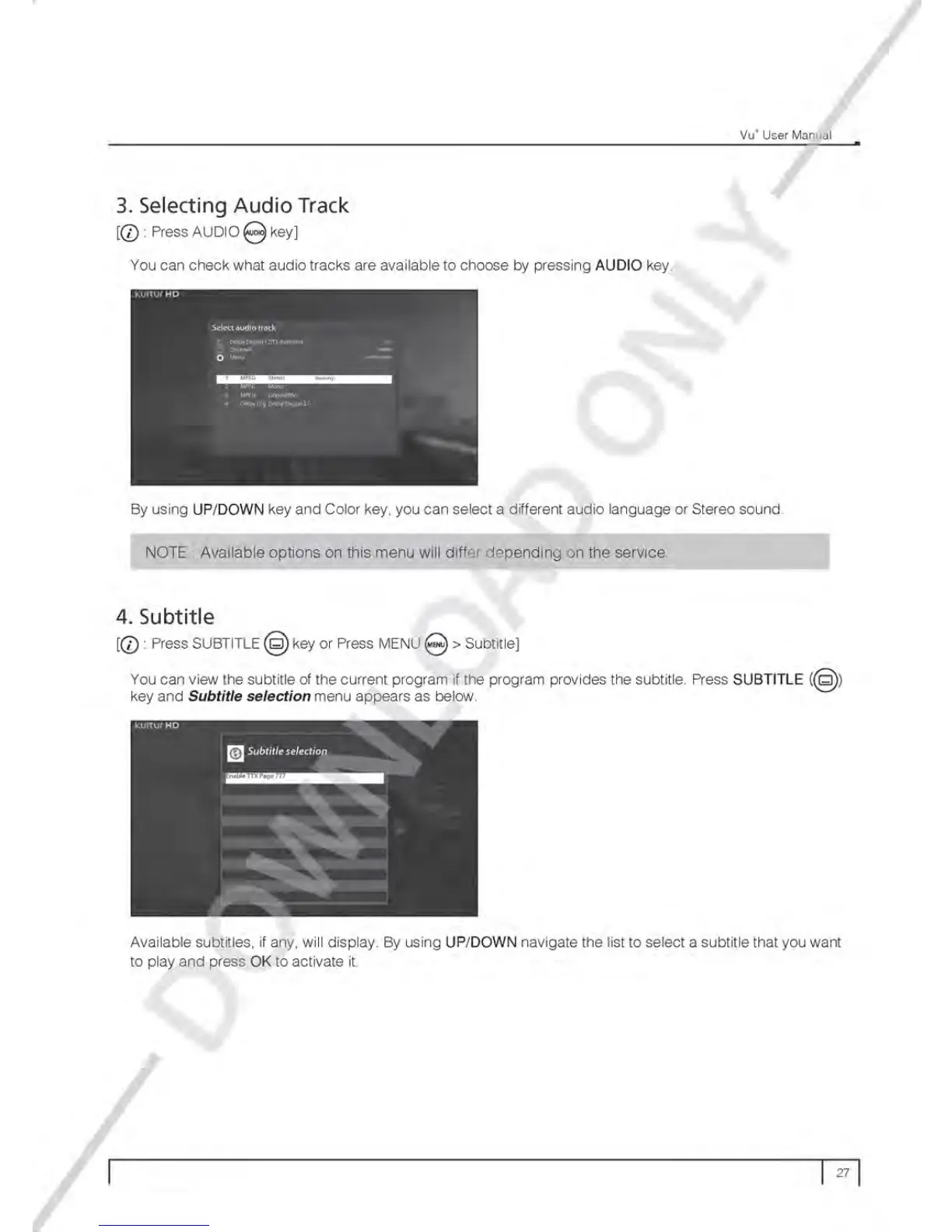Vu+ SOLO 4K - Selecting Audio Track; Subtitle