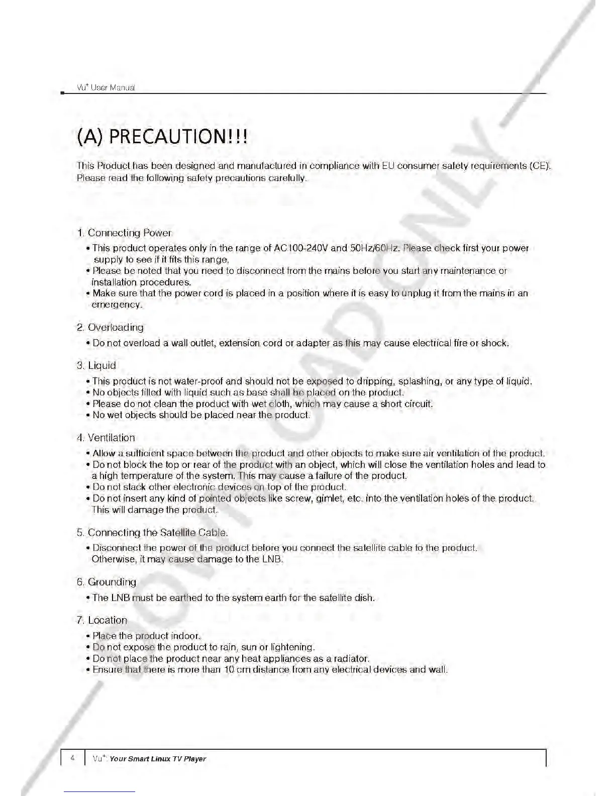 Vu+ SOLO 4K - Product Introduction and Safety Information; Safety Precautions