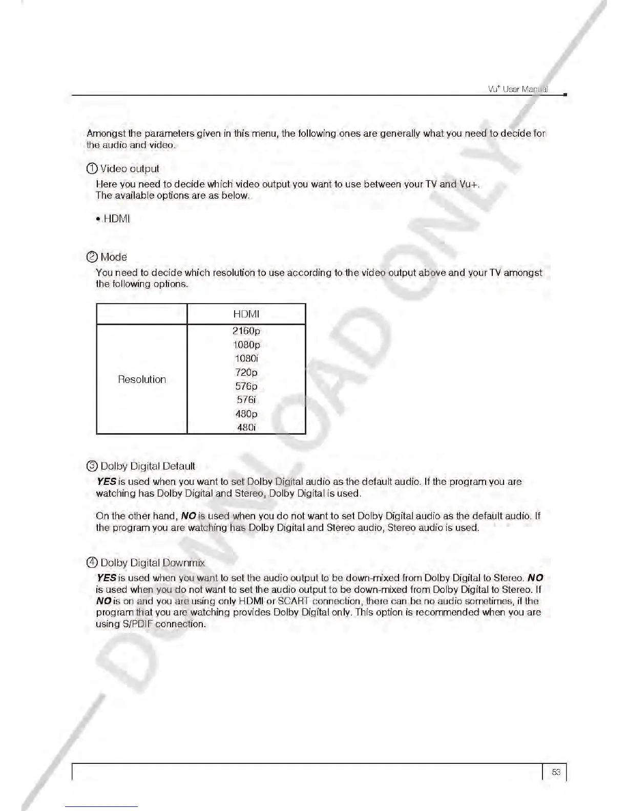 Vu+ SOLO 4K - Video Output; Mode; Dolby Digital Default; Dolby Digital Downmix