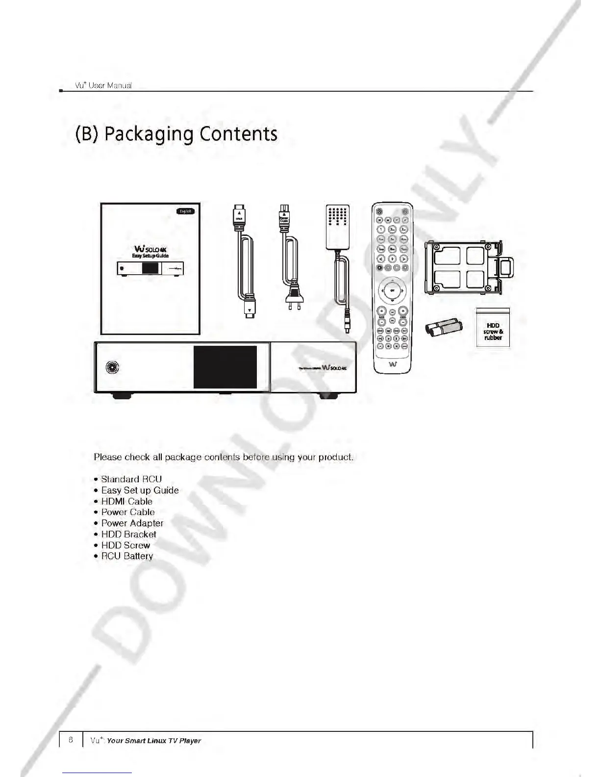 Vu+ SOLO 4K - Packaging Contents