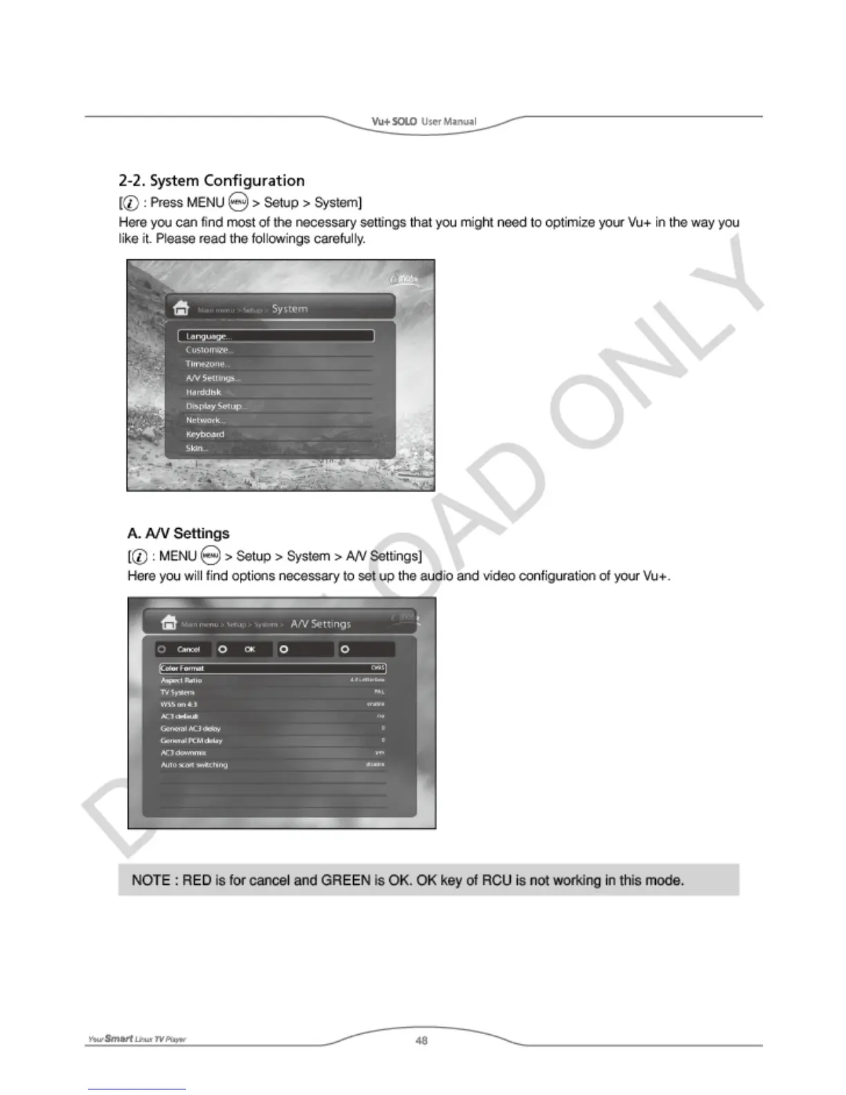 Vu+ SOLO - A;V Settings