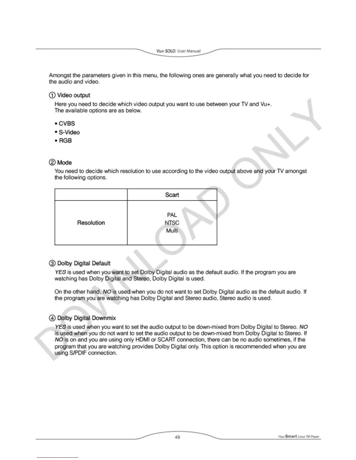 Vu+ SOLO - Video Output; Mode; Dolby Digital Default; Dolby Digital Downmix