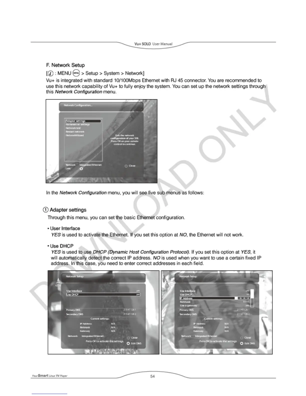 Vu+ SOLO - Network Setup; Adapter Settings
