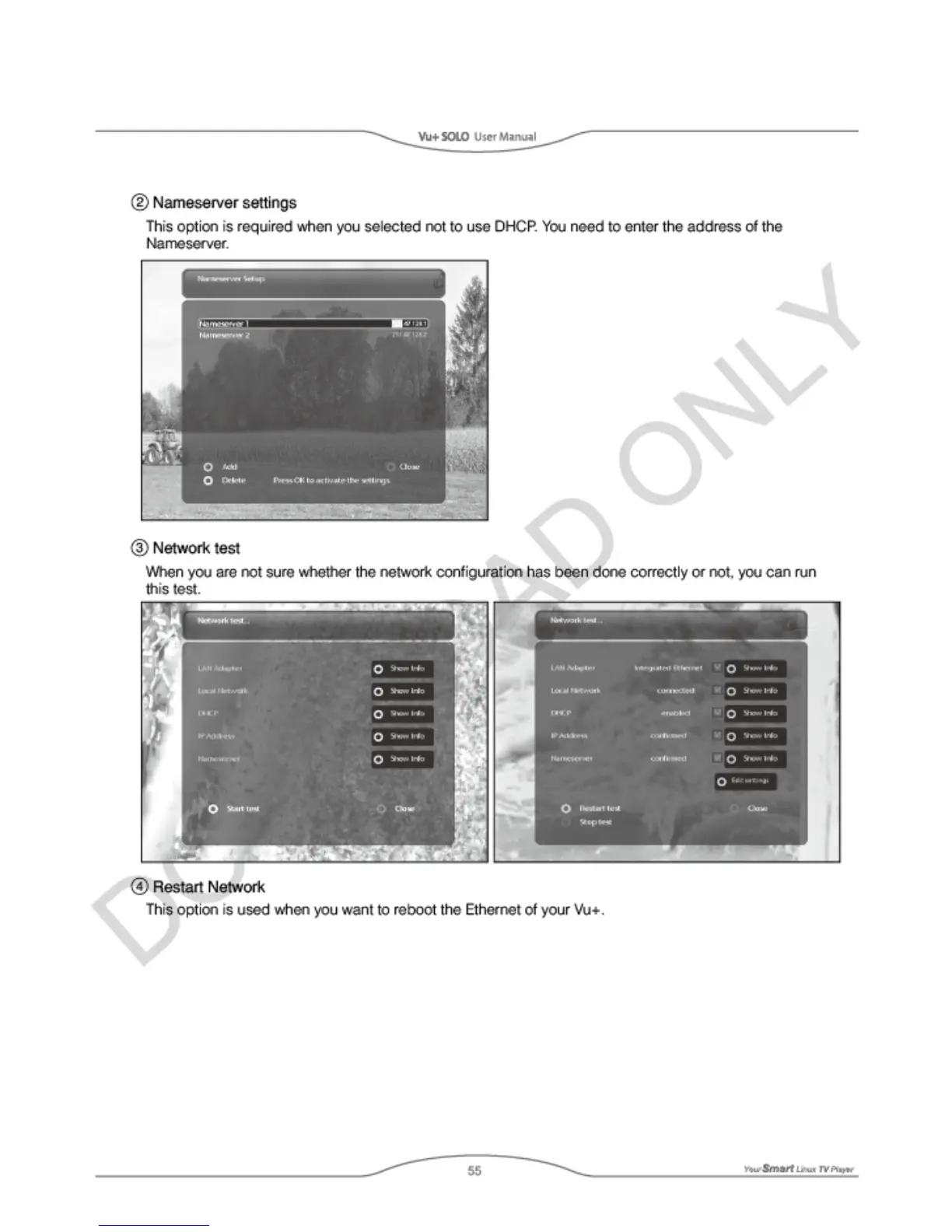 Vu+ SOLO - Nameserver Settings; Network Test; Restart Network