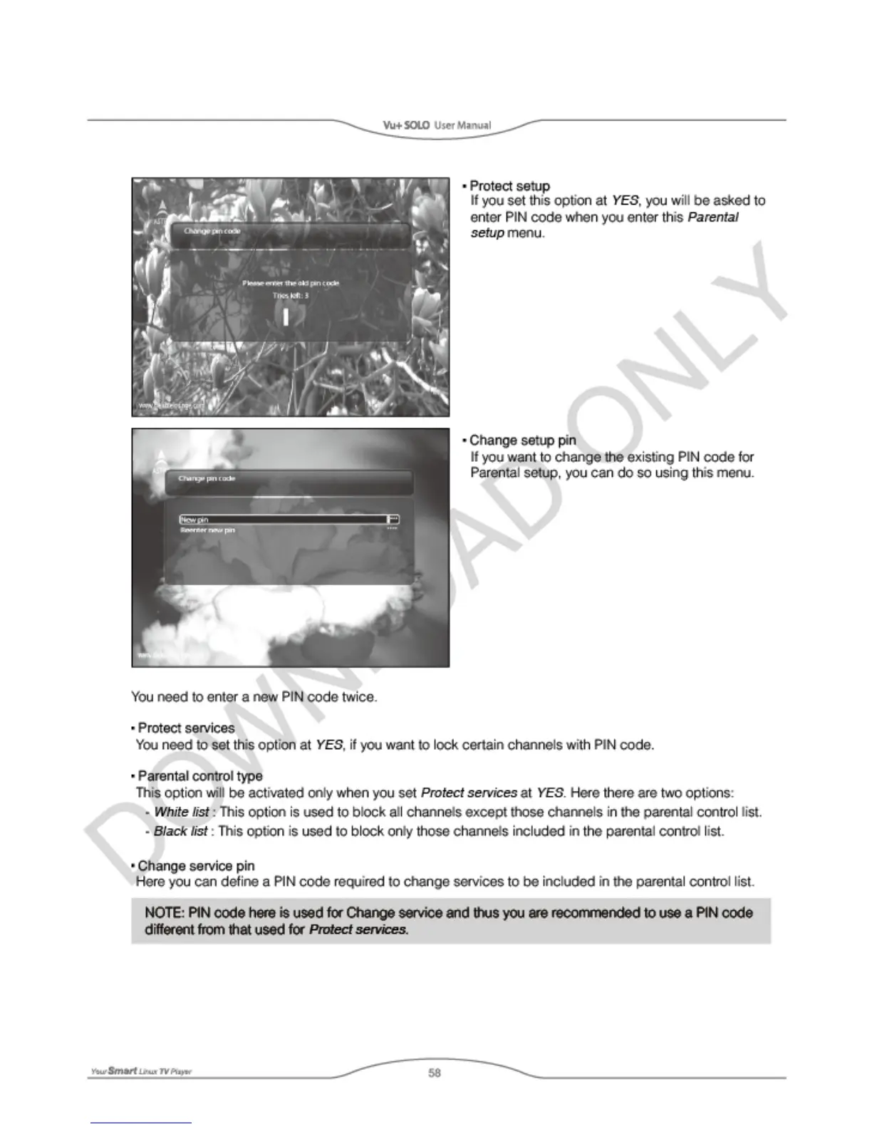 Vu+ SOLO - Protect Setup; Change Setup Pin; Parental Control Type; Change Service Pin