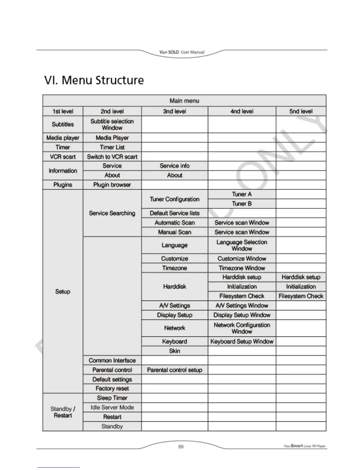 Vu+ SOLO - Menu Structure