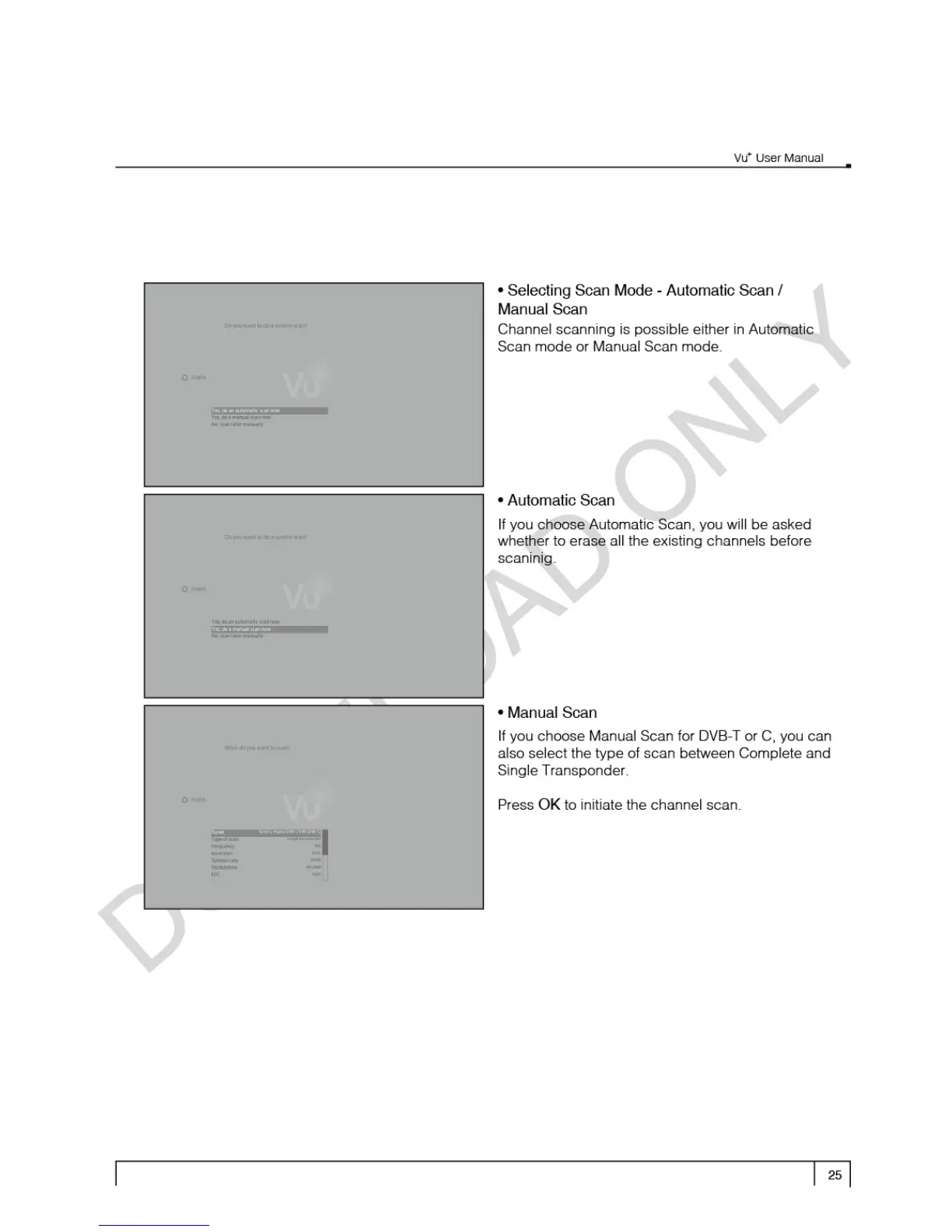 Vu+ Ultimo - Selecting Scan Mode (Automatic;Manual); Automatic Scan Process; Manual Scan Process