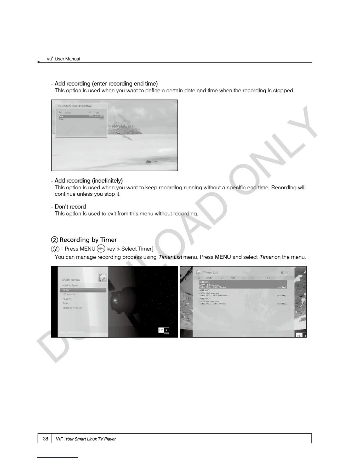Vu+ Ultimo - Recording Options; Recording by Timer