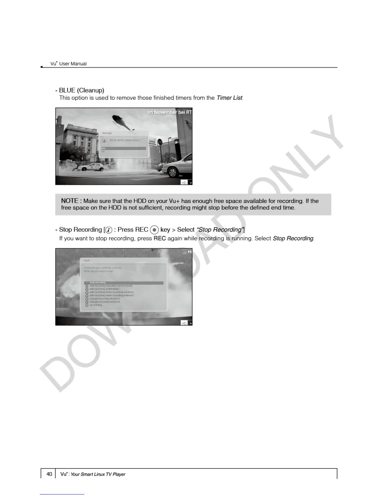 Vu+ Ultimo - Recording; Timer Cleanup and Stop Recording