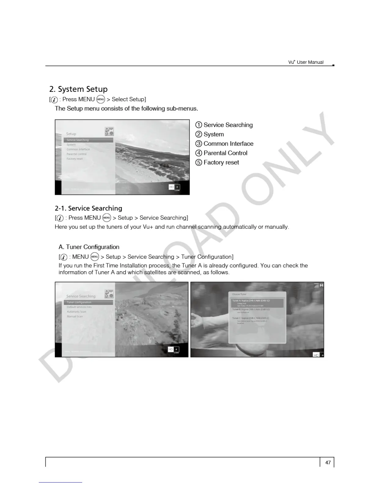 Vu+ Ultimo - System Setup Menu; Service Searching Setup; Tuner Configuration
