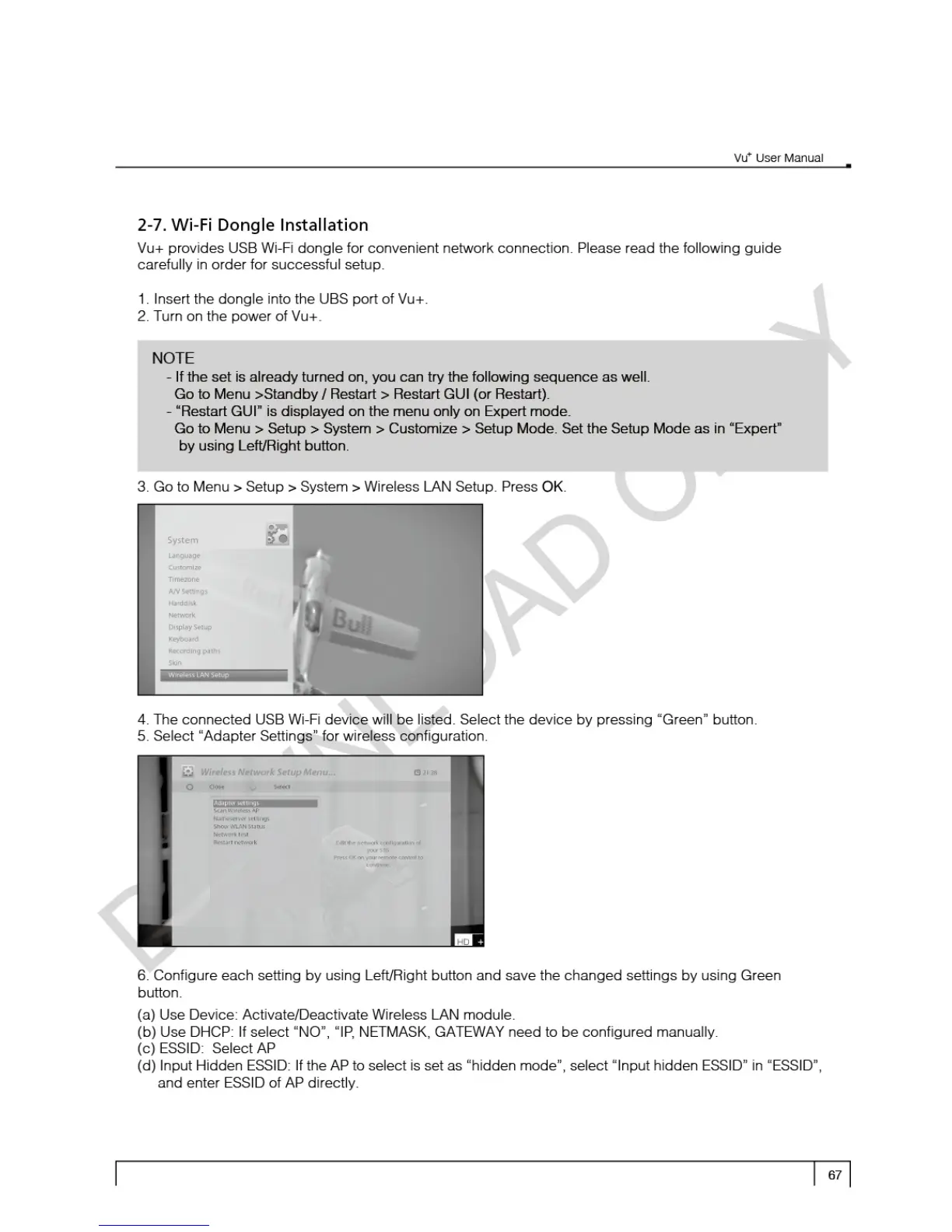Vu+ Ultimo - Inserting Wi-Fi Dongle; Wireless LAN Setup