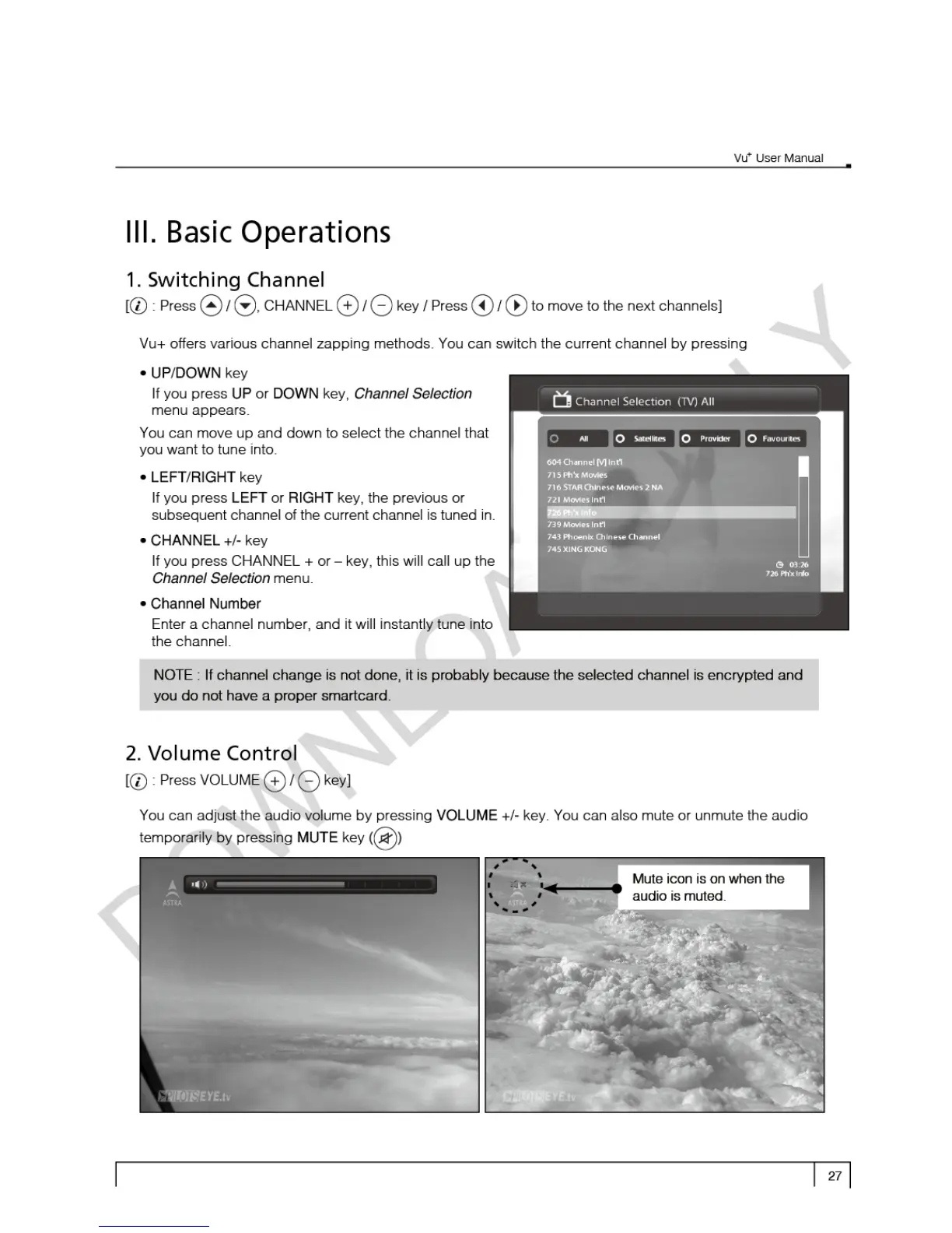 Vu+ UNO - III. Basic Operations; Channel Switching and Volume Control