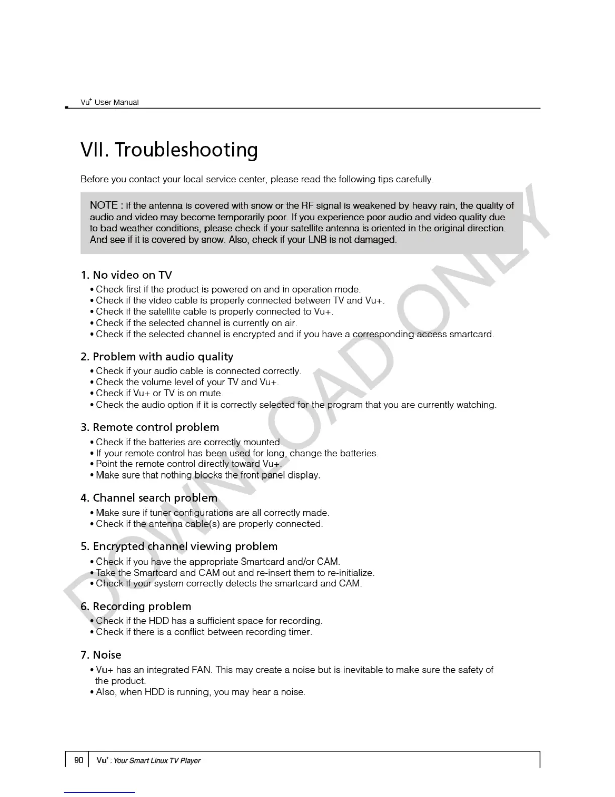 Vu+ UNO - VII. Troubleshooting; Common Issues and Solutions